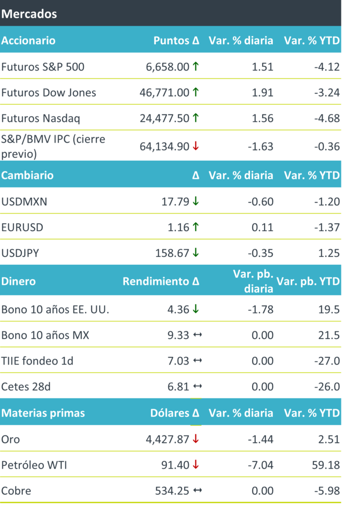 +Fue una jornada de caídas marginales y elevada volatilidad, marcada por un repunte en la segunda mitad del día tras señales de desescalamiento en el conflicto en Oriente Medio. El petróleo reaccionó de…