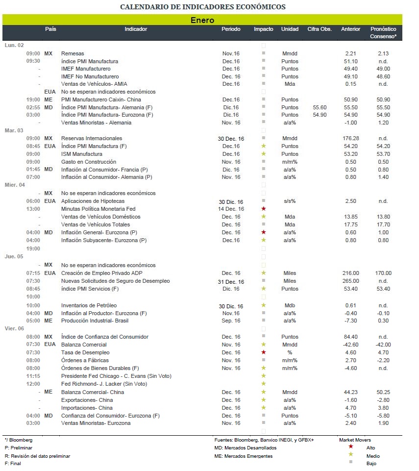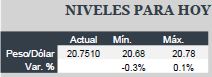 • Divisas: Se espera que los mercados de divisas sigan reflejando una fortaleza moderada del dólar. Consecuentemente, el tipo de cambio podría oscilar entre 20.68 y 20.78.