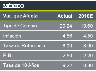 • Implicación: Consideramos que Banxico mantendrá una postura monetaria dura este año, y al menos durante la primera mitad de 2019, con la finalidad de evitar un traspaso de la reciente depreciación del tipo de cambio y que se materialicen efectos de segundo orden en la formación de precios ante la persistencia de los altos niveles de inflación.