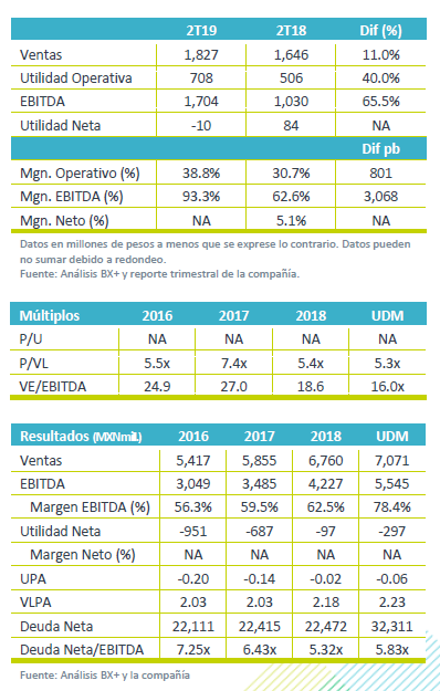 Costos Caen y Mejora Rentabilidad – Los costos se redujeron 2.8% a/a; lo que permitió una expansión en los márgenes operativos. Las cifras de EBITDA incluyen ajustes por los efectos de la adopción de la NIIF 16.