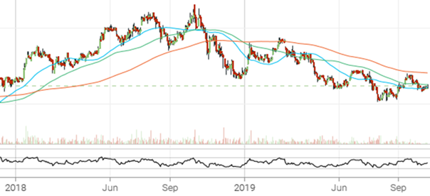 Paraxileno – Los efectos adversos de la sobreoferta del Paraxileno siguen causando revaluaciones desfavorables en inventarios; sin embargo, el efecto de este trimestre empieza a verse en menor proporción, esperamos que esta tendencia continúe en los siguientes trimestres. Así mismo, el precio del petróleo cayó de USD$68 por barril a USD$62 durante el 3T19, por lo que el precio de referencia del Paraxileno cayó 11.32% t/t.