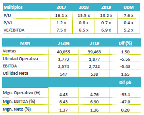 Desaceleración en ventas – Soriana presentaría un trimestre débil ante la moderación en las ventas y el efecto negativo del cierre de tiendas en los U12m. Estimamos un crecimiento en ingresos de 1.5% a/a y un retroceso de 5.4% a/a en EBITDA.