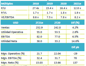 Márgenes – Como parte de su estrategia para contrarrestar los efectos de la crisis, GCC anunció ahorros hasta por USD$20 millones durante 2020, conservando USD$10 millones para este 2021, por lo que esperaríamos seguir viendo un margen EBITDA alrededor del 32.4%, con un margen operativo estimado de 21.7%. Aunque en los próximos trimestres podríamos ver una disminución de los mismos.