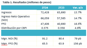 Mejor operación del negocio. En el 3T25, el resultado Operativo Neto ajustado incrementó 14.7% a/a, así miso el margen NOI fue de 94.4%, incrementando 16 pb gracias a mayores ingresos por rentas y costos relativos al mismo más bajo.