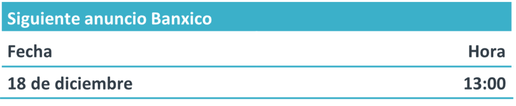 - Noticia: Hace unos minutos, Banxico recortó el objetivo de la tasa de interés a 7.25% (-25 pb.), en línea con nuestra expectativa y la del consenso.