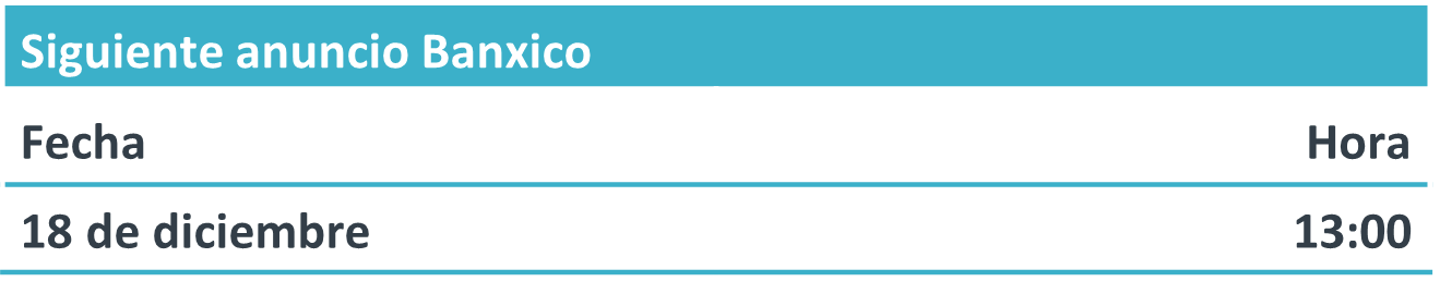 - Noticia: Hace unos minutos, Banxico recortó el objetivo de la tasa de interés a 7.25% (-25 pb.), en línea con nuestra expectativa y la del consenso.