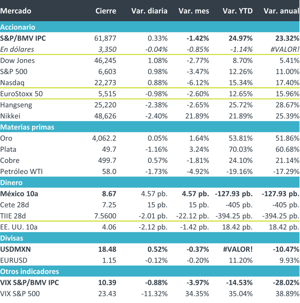 +Por último, el precio del petróleo (WTI) retrocedió, reflejando la entrada en vigor de las sanciones a el petróleo ruso por parte de EE.UU, mientras el oro registró una marginal alza de 0.05% cerrando en 4,062.2 dólares.