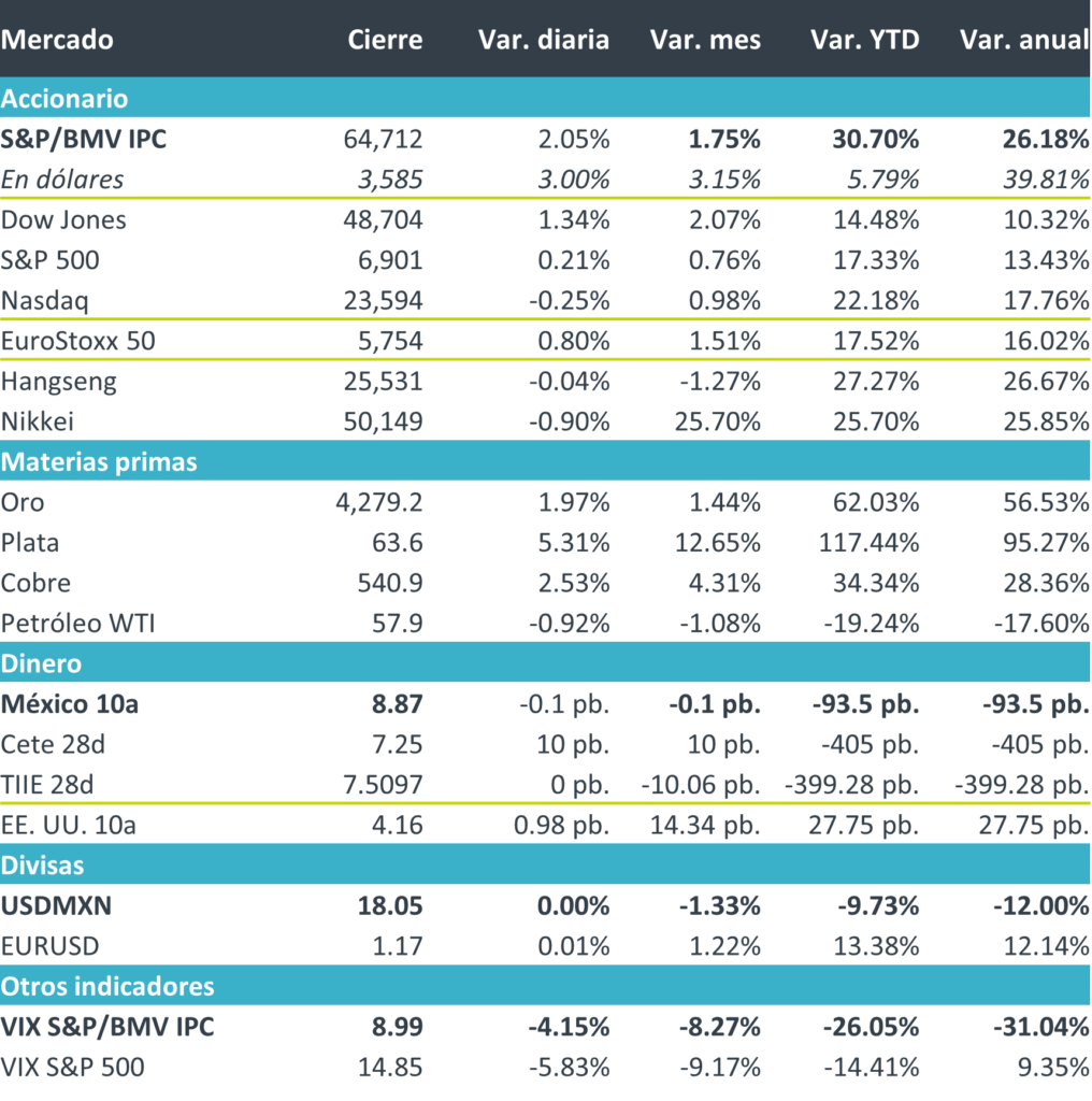+Por último, el precio del petróleo (WTI) revirtió su tendencia alcista, mientras el oro registró un alza de 0.18% cerrando en 4,207 dólares.