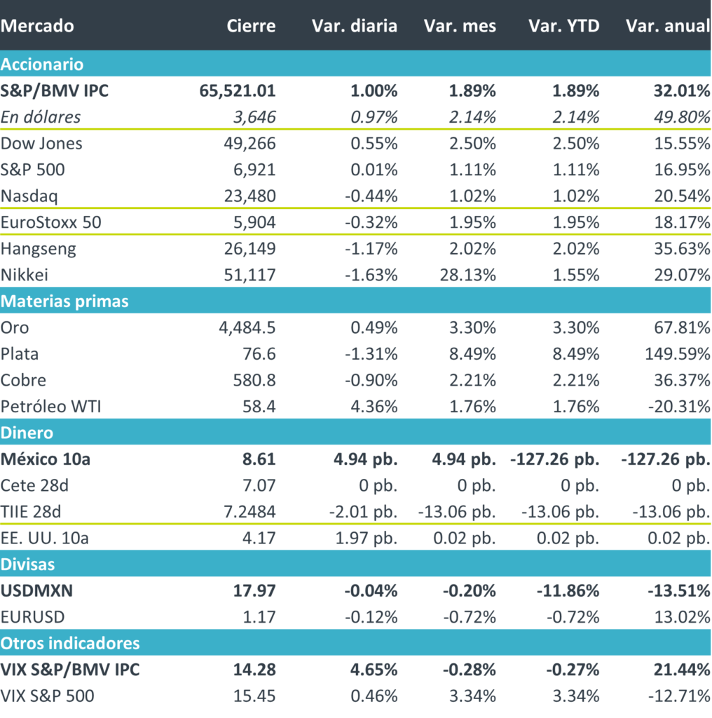Mañana se publicará en México la Producción Industrial; en EE. UU., las nóminas no agrícolas y la tasa de desempleo correspondientes a diciembre, junto con el índice preliminar de confianza del consumidor de la Universidad de Michigan para enero.