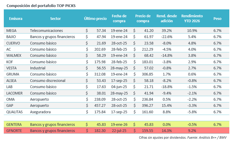 • Retomamos la posición de GENTERA en nuestro Portafolio dada la expectativa de continuar liderando los crecimientos en la cartera de crédito por encima del promedio del sistema financiero y de sus comparables en el mercado mexicano.