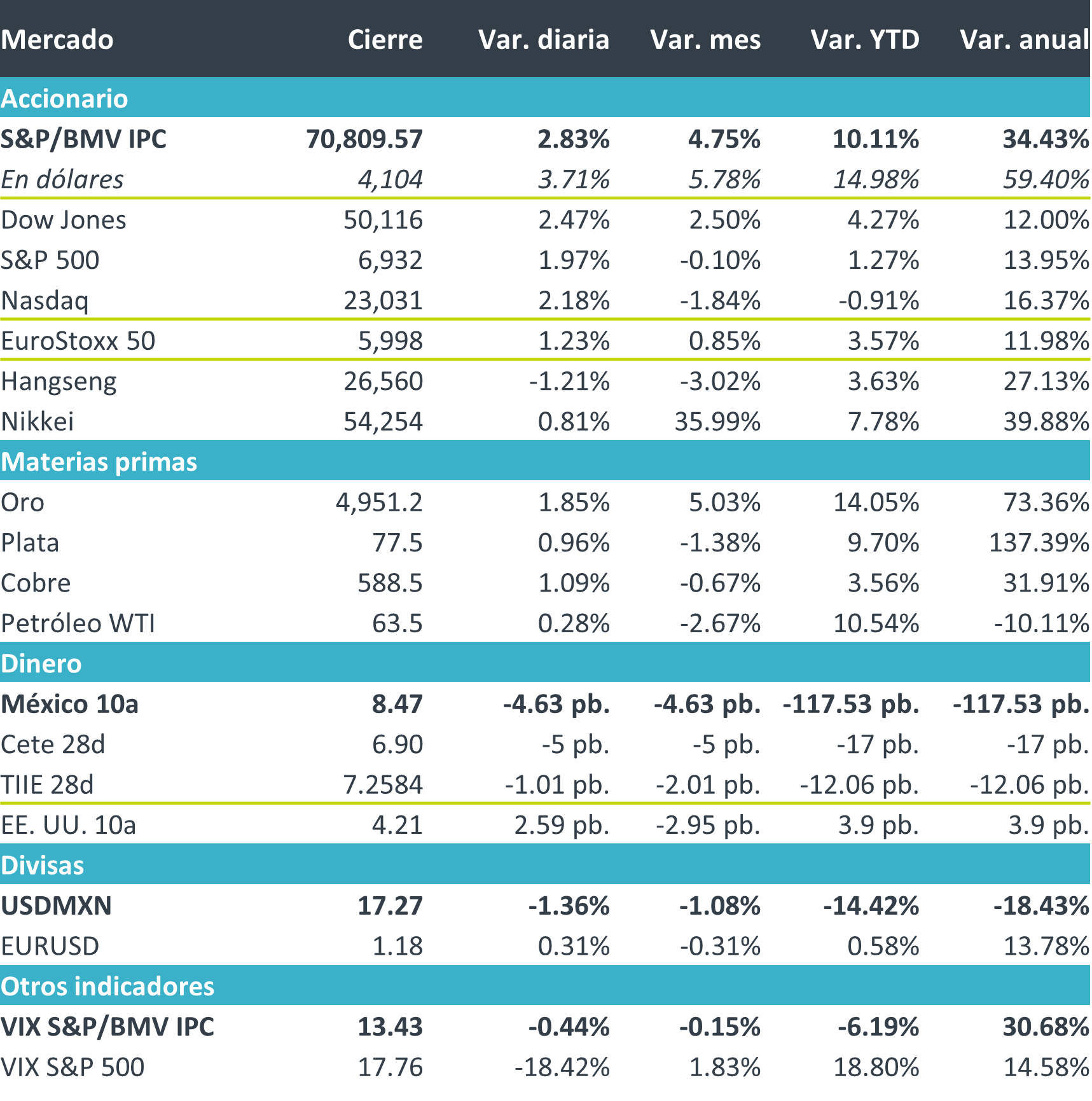 La próxima semana en México se espera el dato de inflación para el mes de enero, así como la producción industrial para diciembre. En los EE.UU., las ventas minoristas de enero así como la inflación para el mismo mes.