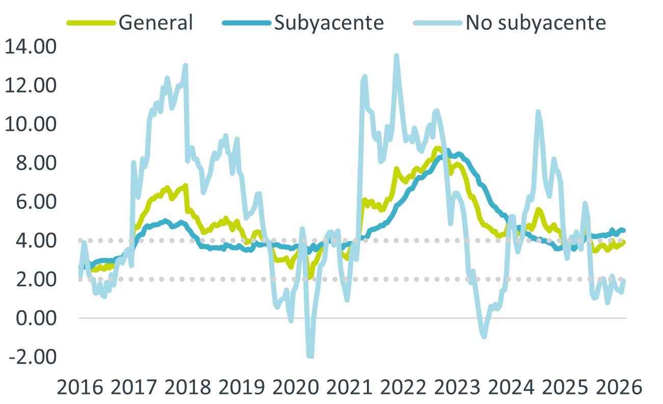 *Subyacente excluye elementos más volátiles. Fuente: Análisis B×+ / INEGI.