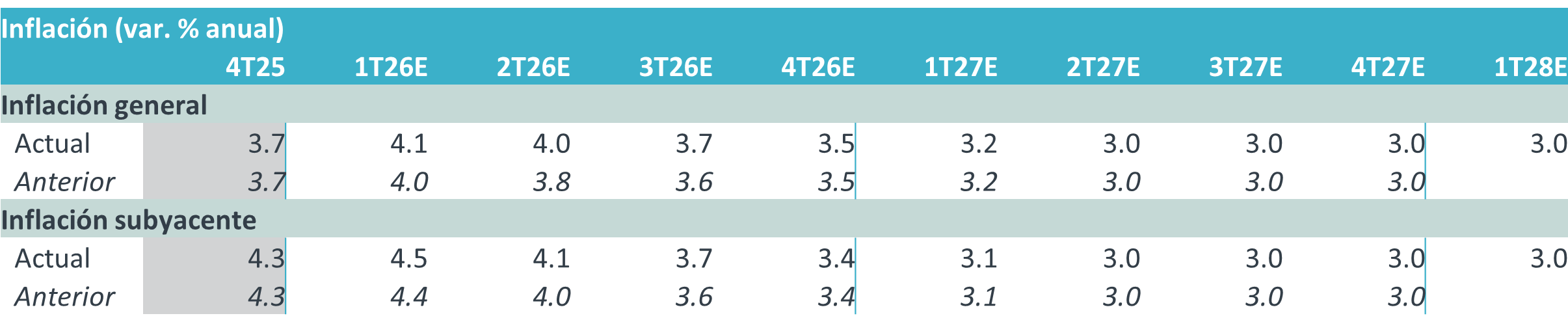 Tabla 1. Inflación promedio trimestral (var. % anual)