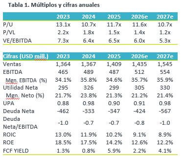 Aunque la compañía pertenece a una industria en madurez, y las expectativas económicas continúan bajas, consideramos que la empresa cuenta con oportunidades de crecimiento gracias a planes de infraestructura en las economías en las que opera. De la misma manera, este 2026 incrementará su capacidad de producción gracias a Odessa.