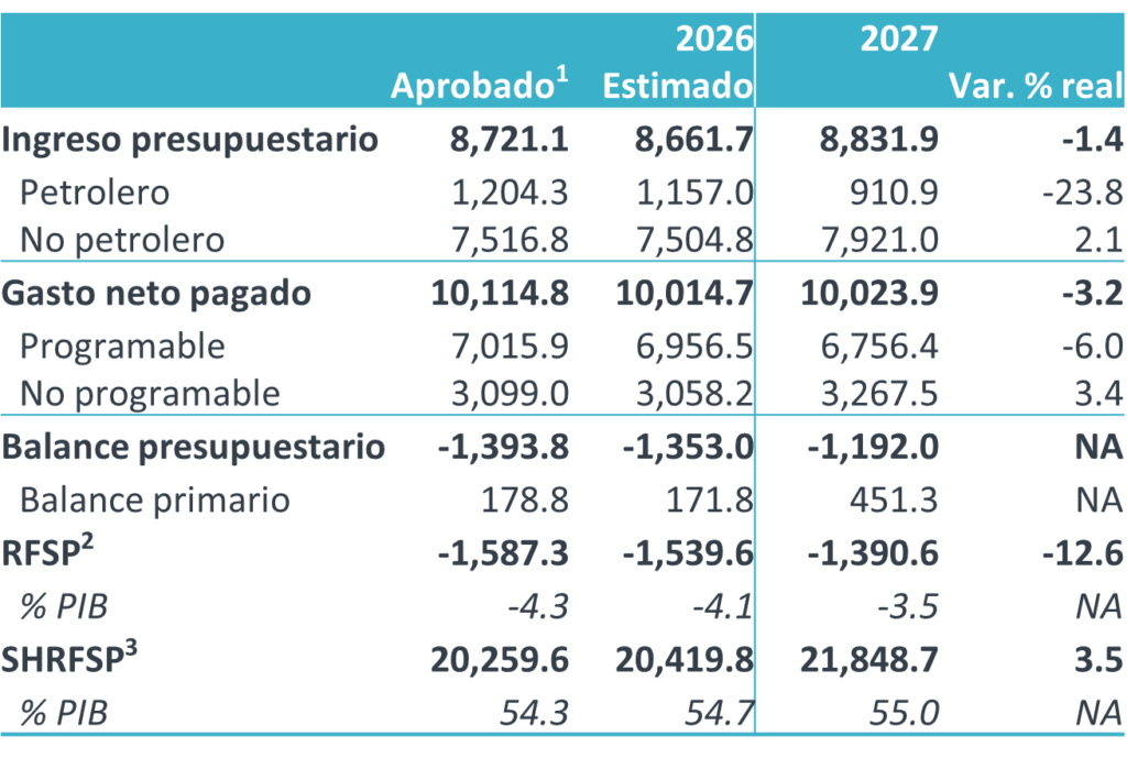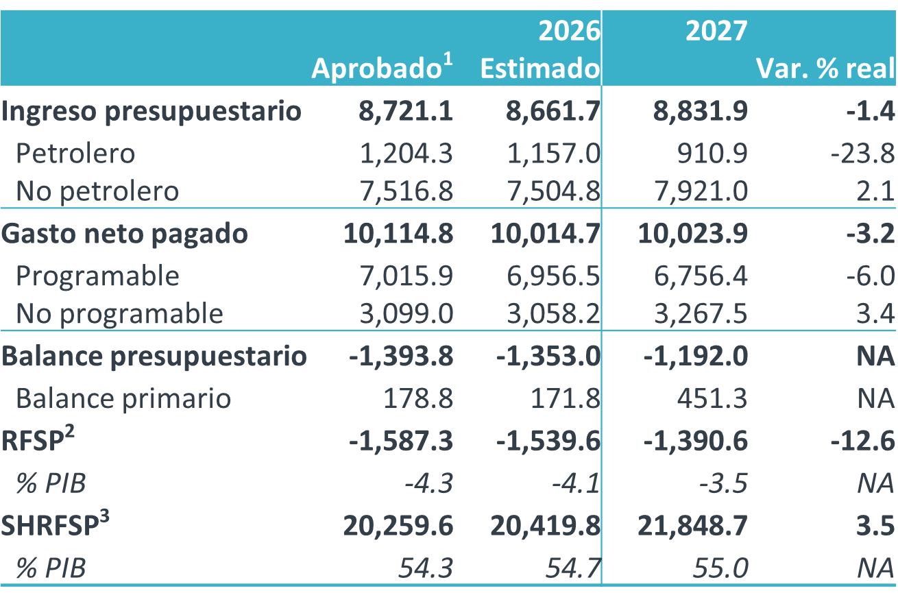 Estimaciones de finanzas públicas 2026-27 (mmdp)