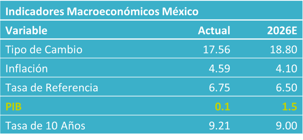 Un discreto crecimiento económico y vaivenes en la política comercial de los EE. UU. todavía limitarán a ciertos rubros de la exportación afectados por las tarifas (metálica, automotriz). Su dinámica mejorará conforme se acelere la economía americana y la conclusión de la revisión del T-MEC ofrezca certeza comercial.